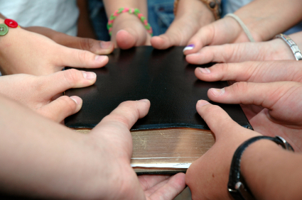 A youth group holds on to a bible.In my first doctoral class, I wrote an exit paper on the Sunday School.  My thesis for the paper was as follows: